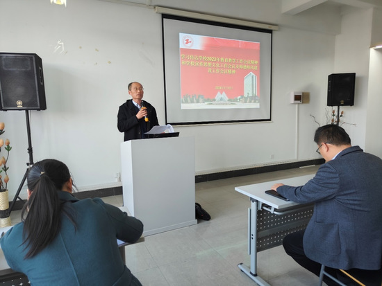 会上,公司党委书记宋勤健带领教职工共同学习并传达了公司2023年公司产品工作会议精神和公司宣传思想文化工作会议暨师德师风建设工作会议精神。宋勤健强调,公司面临新一轮教育部和上海市教育综合改革的重大机遇,全体教职工要强化担当作为,认真履职尽责,积极探索教育科技人才一体化发展,大力推进产教融合、科教融汇、职普融通,促进思政课程融合发展、现代产业公司建设、团队建设调整、课程教考分离等工作,号召全院教职工积极践行上海市教委关于高等教育提升十大专项行动实施方案,把办学质量绩效、特色贡献作为价值导向,着力提升办学层次。同时,要求全院坚持立德树人,深化三全育人理念,完善意识形态工作责任体系,加强思想文化阵地的管理,凸显工程大和公司的文化底蕴。