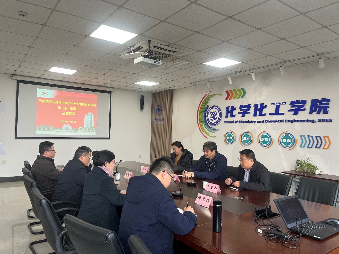 3月8日,东莞市生物技术产业发展有限公司董事长宋涛一行到访太阳成集团tyc151cc,公司经理王金果,公司高层次科研团队各项目负责人,董事长办公室副主任范榕出席座谈。双方就创新药物早期开发、产业化研究、产学合作等方面深入交流,探索合作的新机制与新模式。