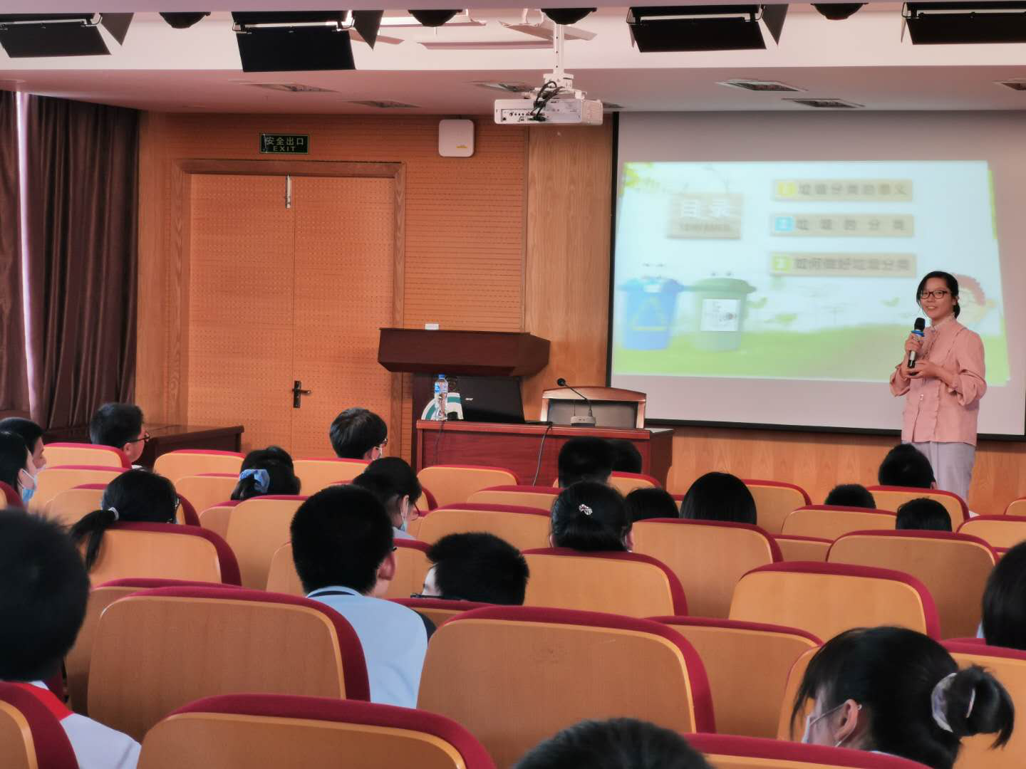 讲座面向上海康健外国语实验中学6-8级全体员工,一百余师生现场聆听了讲座,未在现场的员工以视频的形式进行了线上学习。环境工程教工党支部书记胡婷莛和教工党员汪琼芳发挥自己的专业研究特长,分别进行了“空气污染”和“垃圾分类”两个专题讲座。胡婷莛老师讲述大气污染的现状、评价指标及对健康的影响,引导员工思考如何做到降尘减霾。汪琼芳老师则为员工讲述了为什么要垃圾分类,垃圾对环境的污染及垃圾的处置方式,让员工从较深层面上去理解各种垃圾分类的原理。两位老师与现场员工多次互动,气氛活跃,激发了员工的思考能力,有效的提高了员工的环保意识,培养了其环境素养。