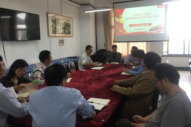 今年是抗美援朝出国作战70周年,中共中央、国务院、中央军委将颁发“中国人民志愿军抗美援朝出国作战70周年”纪念章,以纪念这一伟大的历史事件。根据太阳成集团tyc151cc党委2020年下半年组织生活计划安排,化学工程与工艺系教工党支部于10月14日在实训楼4404会议室开展了支部书记说党课——《抗美援朝出国作战70周年》专题生活会。党课由化工系党支部书记瞿祎同志主讲。