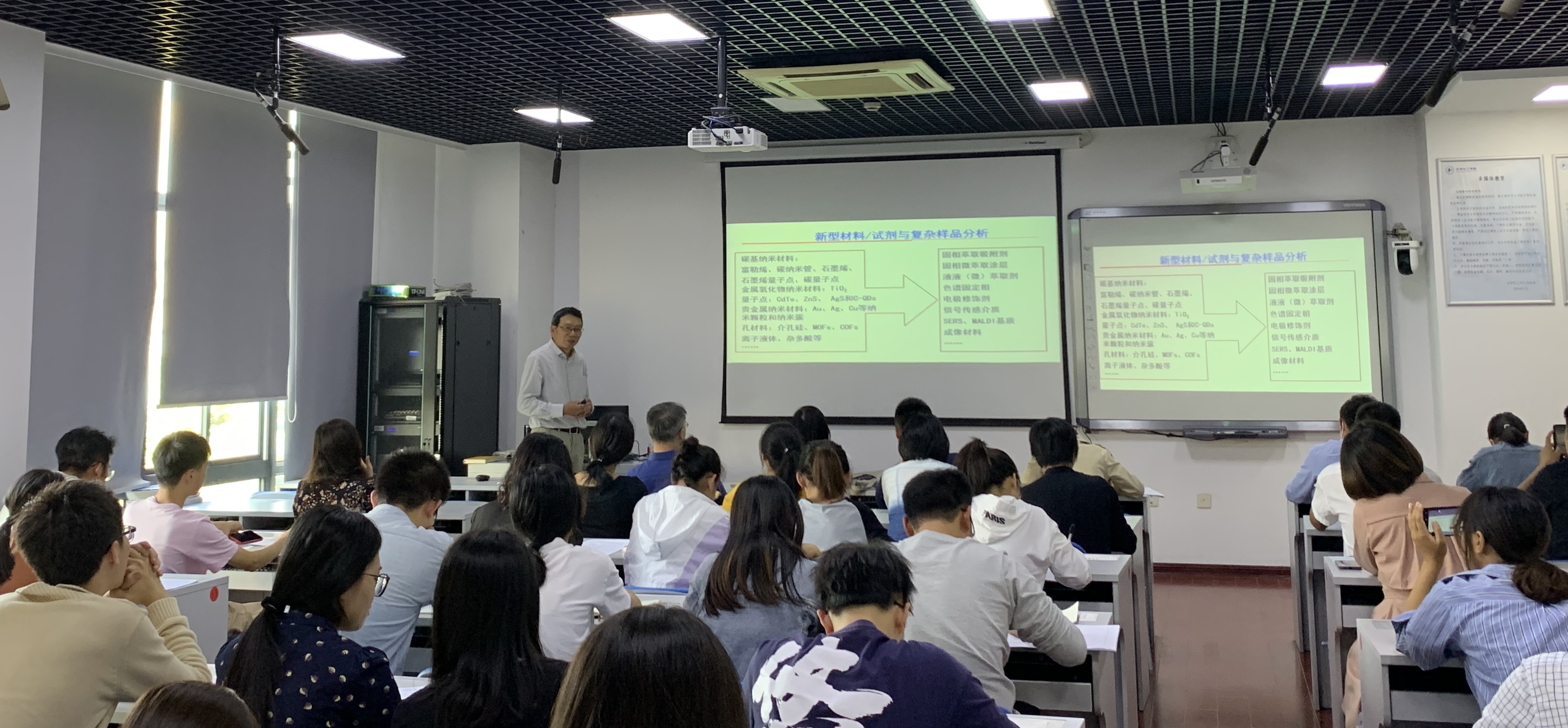 接下来的报告中,严秀平教授详细介绍了他从独立开展科研的心路历程,并分享了他在环境分析、样品分离与生物分析领域的最新研究进展。严教授利用共价有机框架材料(COFs)比表面积高、孔道结构易修饰等优点,创新性地实现其在多种分析样品的预处理中的应用,如金离子的回收、水体中多环芳烃的固相萃取、二甲苯异构体的固相微萃取等。在此基础上,严教授进一步将COFs应用于气相色谱和高效液相色谱,并通过和固相微萃取的联用,成功实现多氯联苯、手性化合物等多种复杂样品的有效分离。