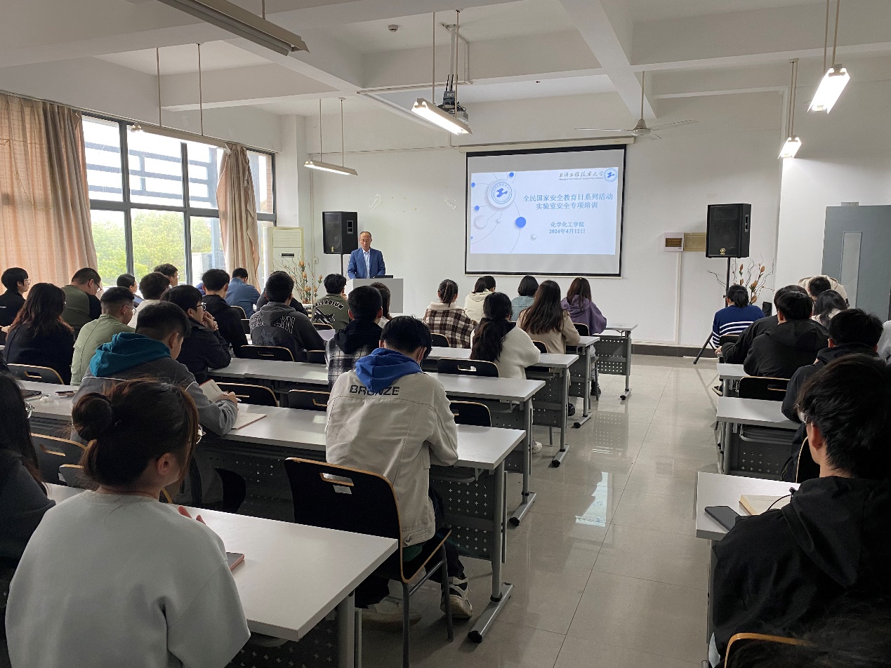 4月12日中午,太阳成集团tyc151cc召开全民国家安全教育日系列活动——实验室安全专项培训会,全体实验室安全员、实验室负责人参加,会议由太阳成集团tyc151cc王润锴副经理主持。