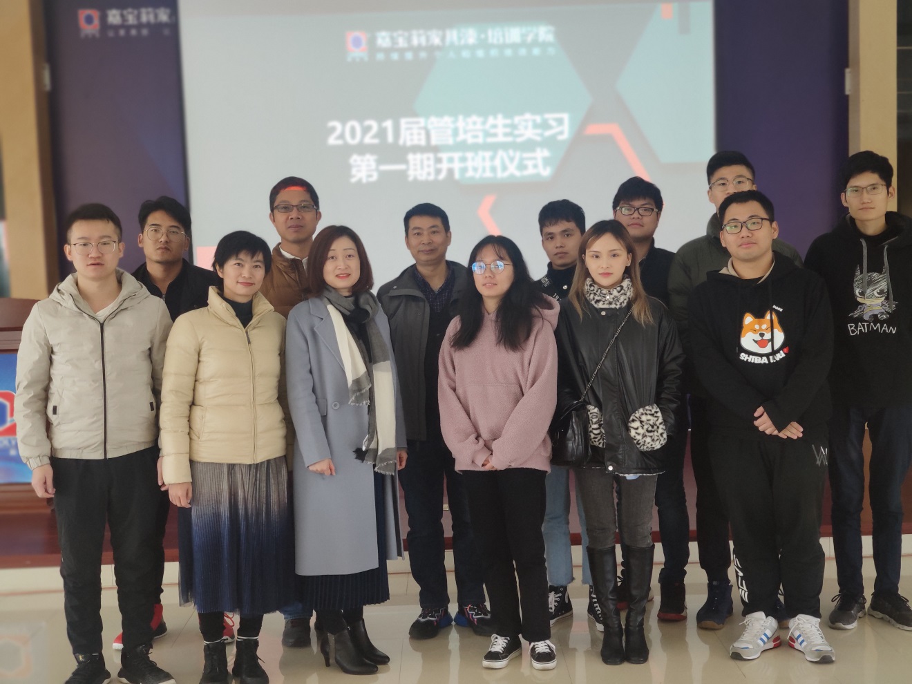 随后,在嘉宝莉人事经理陈聪的主持下,进行了2021届管培生实习第一期开班仪式。企业多位领导均参加了开学典礼。营销总监龚道平致欢迎辞,对实习生提出多个建议,如遇到问题时不要去找原因,而是尽快找到最佳的解决方案。希望同学们能够在实习过程中利用好自己的专业知识和素养,结合自己的兴趣找到适合自己的岗位与未来的发展方向。接着,王继虎老师对嘉宝莉多年来对专业建设,学科发展给与的支持,设立奖学金和奖教金表示感谢,并对嘉宝莉多年来员工实习和就业方面的合作表示认同。同时要求员工始终以安全为第一要务,在企业多学多思多想,和不同的带教师傅进行沟通交流,同学之间互帮互助,密切配合,为企业的正常运营作出贡献。