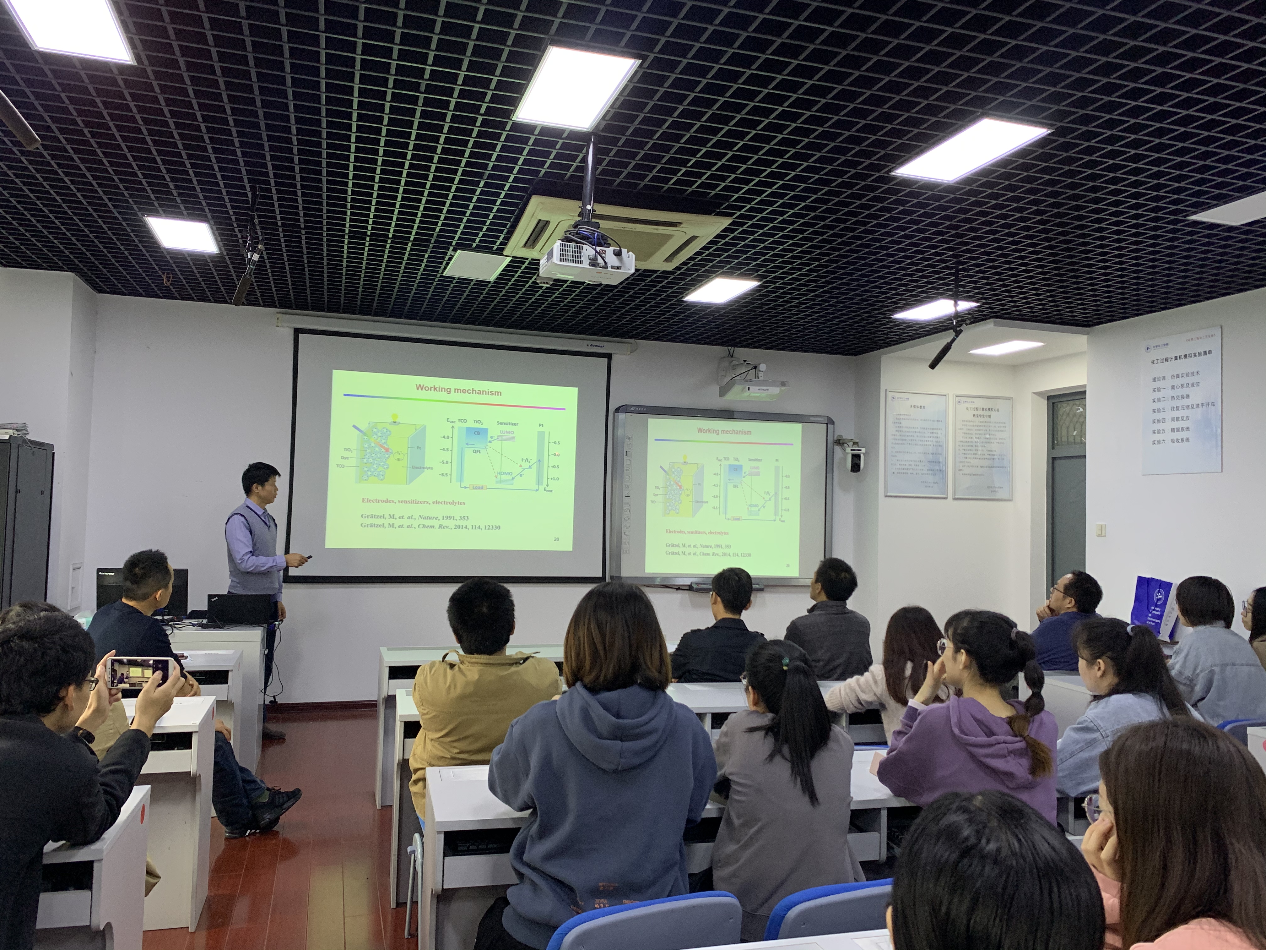 11月20日上午10时,华东理工大学教授解永树教授应公司太阳成集团tyc151cc的邀请,在实训中心3414作了关于新型卟啉分子的合成与光电性能研究学术报告。太阳成集团tyc151cc张敏教授代表化工公司,对解永树教授的报告表示欢迎,并主持报告会。本次活动属材料化学工程团队建设主办的精品讲座,由张敏教授主持,李亚副经理,陆杰副经理和公司多位教师出席并进行深入交流。报告会中,解永树教授首先简要介绍了卟啉化学,特别是错位扩展卟啉的发展现状,介绍了卟啉化学在太阳能电池领域的应用和潜在前景。随后介绍了其课题组在新型错位扩展卟啉及衍生物方面的工作及最新研究进展。解教授的还讲述了研究中的一些有趣故事,分享了一些在研究中的心得体会,希望大家在面临困难的时候一定要坚持。同时,在报告会的问答交流部分,解教授还与参会老师和同学进行了深入热烈的讨论。