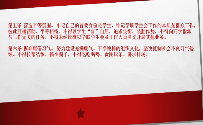 此次会议通过对《关于学联员工会工作人员改进作风服务同学的若干规定》六条的学习,指出各部门要勤于反省和自我批评,把努力为同学服务放在员工工作的首要地位,扎根同学、求真务实,坚决抵制社会不良风气的侵蚀。