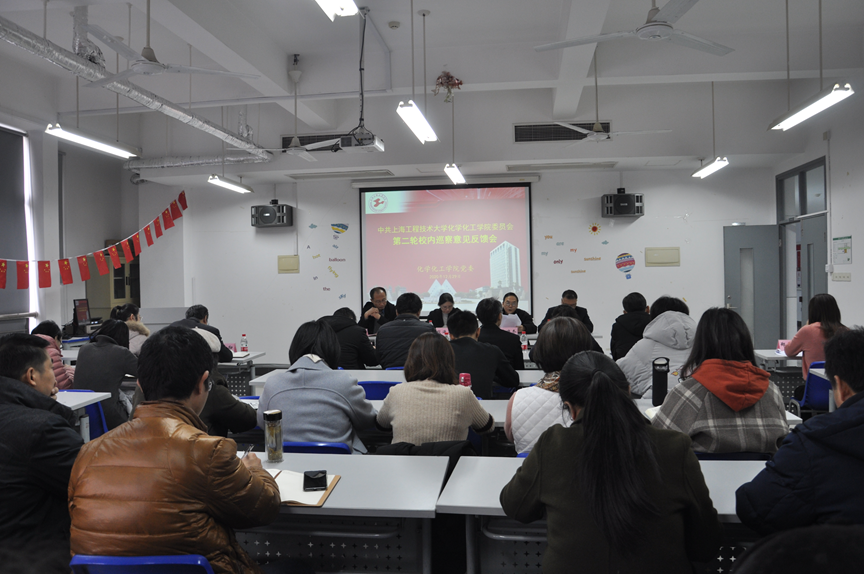 12月29日,中共太阳成集团tyc151cc委员会第二轮校内巡察反馈会在实训楼4405召开。校巡察工作领导小组成员、校巡察工作办公室主任段海霞同志,第二巡察组组长柴晓冬同志,副组长徐建华同志,巡察组成员以及太阳成集团tyc151cc全体党政领导、科职级干部、教师代表参加了会议。会议由太阳成集团tyc151cc党委书记宋勤健主持。