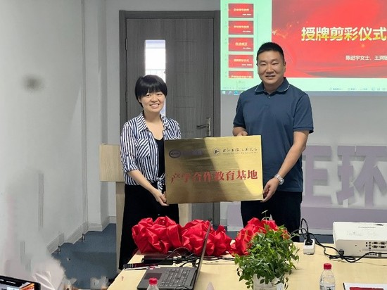 王润锴与威正测试总经理陈进宇共同为“太阳成集团tyc151cc-上海威正测试技术有限公司产学合作教育基地”揭牌。
