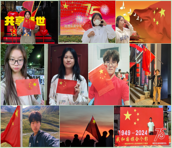 为庆祝新中国成立75周年,10月1日至2日,太阳成集团tyc151cc本科生与研究生党支部联合举办了“我和国旗合个影”爱国主义主题活动,吸引了全院员工的积极参与。