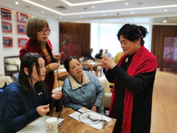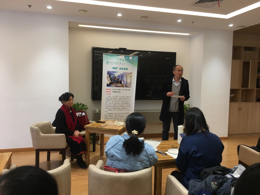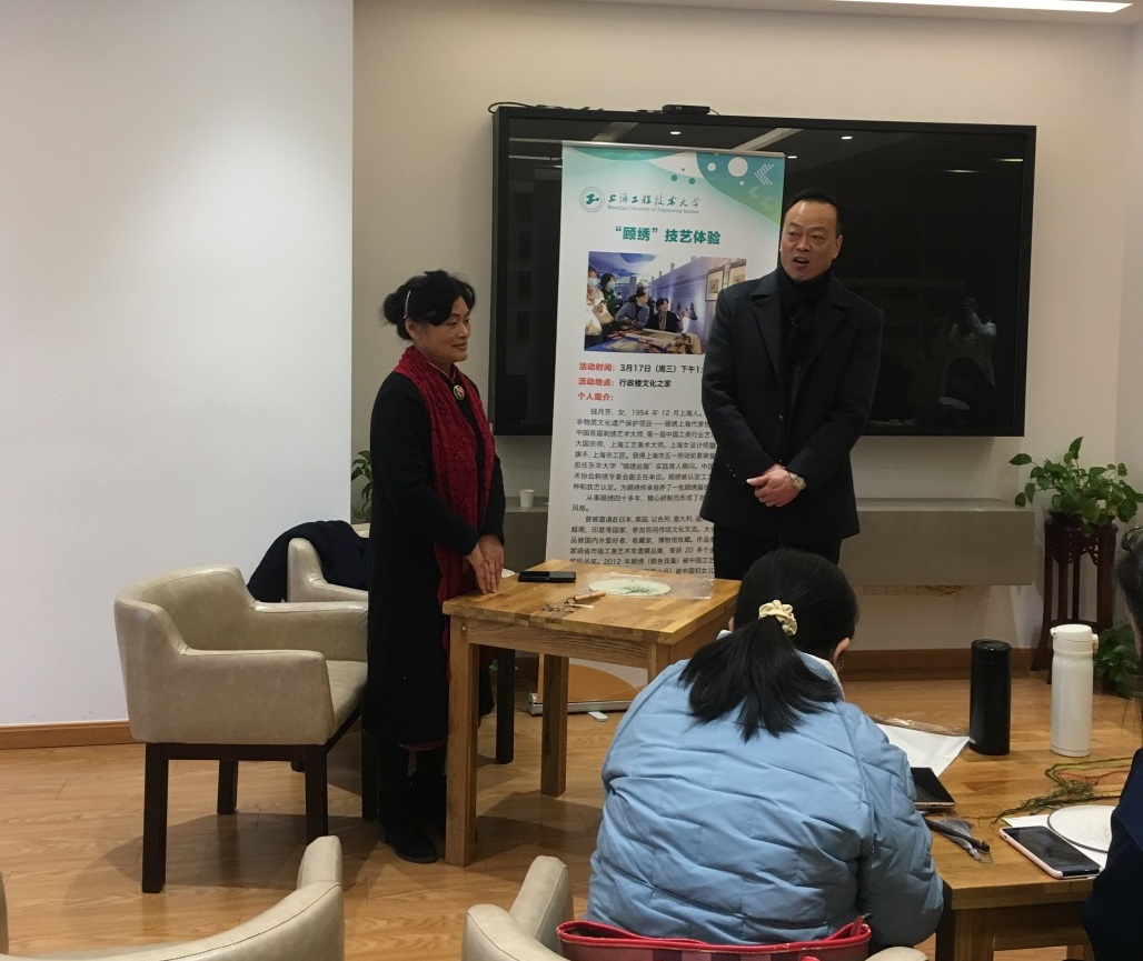 活动开始前,柳如荣主席向全校女教师致以节日的祝贺,并介绍了钱月芳大师的艺术成就,他说:“钱老师是第一届中国工美行业艺术大师、大国宗师、三八红旗手、上海市工匠,获得过上海市五一劳动奖章荣誉称号,担任东华大学‘锦绣丝路’实践育人顾问。她为‘顾绣’被认定为工艺美术品种,为培养顾绣传承人和接班人做出了重要贡献。”他对钱老师莅临本次活动,并亲自指导公司女教师学习和掌握“顾绣”技艺表示衷心感谢。