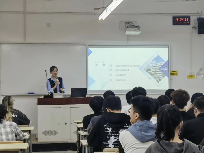 胡静主任围绕“双碳”战略的提出与推进,以及推进过程中的新形势和新要求进行了深入讲解,结合企业具体应对措施进行讨论。她首先结合国家“双碳”战略和团队实践经验,向同学们介绍了当前全球环境气候变化及全球碳减排进程。