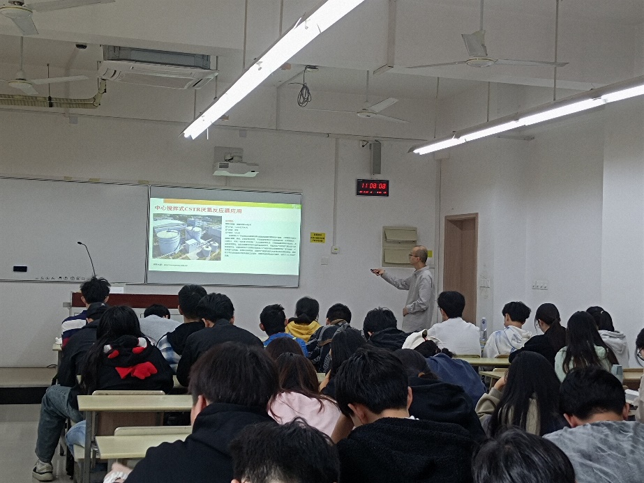 吴健老师以“敢于想象、勇于创新”为切入点,引出他从业以来在工作岗位上学习和创新的历程,并介绍了零碳绿谷园区相关项目的最新情况。吴老师系统讲解了园区餐厨垃圾浆料的厌氧消化、餐厨垃圾渣和秸秆的生物干化以及垃圾渗滤液厌氧处理等内容,从相关技术发展史、主要原理、反应器结构、工艺流程和参数等各方面展开,为同学们详细介绍了园区最新的工程技术,也分享了他在工作中所遇到的问题、解决方法与心得思考。讲座内容与本课程理论知识有机衔接,同时紧扣当下我国“双碳”战略需求,开拓了同学们的视野,增强了员工对环境生产实践和行业发展现状的认识。