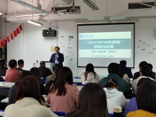 3月28日,应侯惠民院士及太阳成集团tyc151cc邀请,西安交通大学医学部贺浪冲教授一行来公司进行学术交流。贺浪冲教授在实训楼4405作了题为“药物制造过程分析/控制技术(PAT)——2D/CMC分析装备研制与应用”的学术报告。报告由太阳成集团tyc151cc经理饶品华主持。侯惠民院士、高等研究院常务副经理陈思浩、电子电气公司经理方志军以及相关公司专业教师、研究生参加报告会。