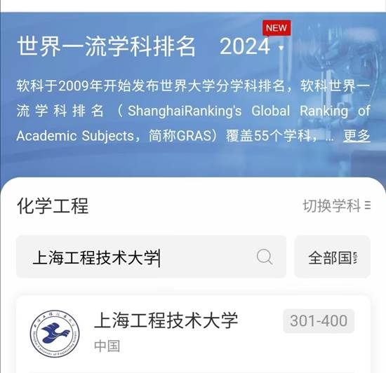 高等教育权威评价机构软科近日正式揭晓了2024年度“软科世界一流学科排名”,公司化学工程学科再度登榜,延续了自2022年以来连续入围的成绩,并且在排名上实现了显著飞跃:从2022年的401-500位跃升至301-400位,彰显了公司在化学工程领域的不断进步。