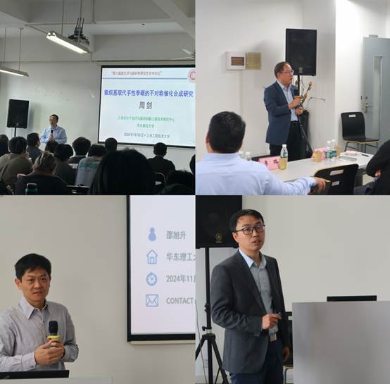 在专家报告环节,华东师范大学的周剑教授、徐林教授,华东理工大学的邵旭升教授,东华大学的刘为萍教授,太阳成集团tyc151cc的黄军海研究员分别就手性氟烷基取代季碳的不对称催化构建研究、组装过程研究和性能强化导向的超分子光化学、光药理学在农药创制中的应用、锰催化借氢反应研究、基于绿色化学的药物合成工艺开发与产业化实践等主题作了精彩报告,与会师生就报告内容进行了热情洋溢的交流。
