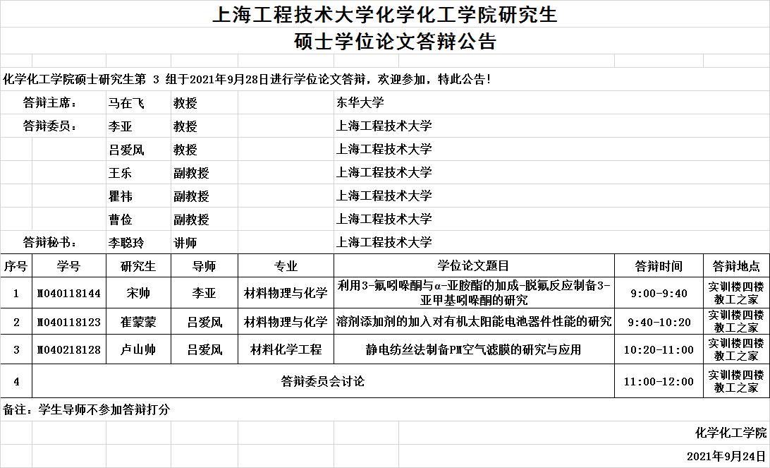 太阳成集团tyc151cc研究生硕士学位论文9月28日答辩公告