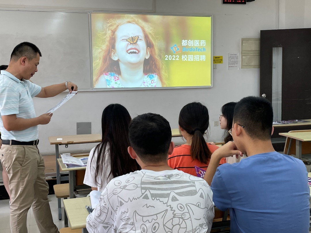 近日,都创(上海)医药科技股份有限公司在公司教学楼C114开展2022届秋季校园招聘宣讲会,都创医药于海波先生作为主讲人主持本次招聘宣讲会。