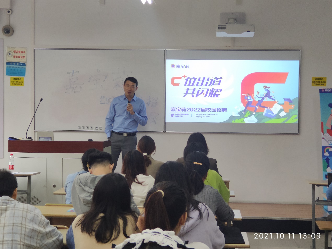 10月11日下午,上海嘉宝莉涂料有限公司在教学楼D106开展了2022届招聘宣讲会。