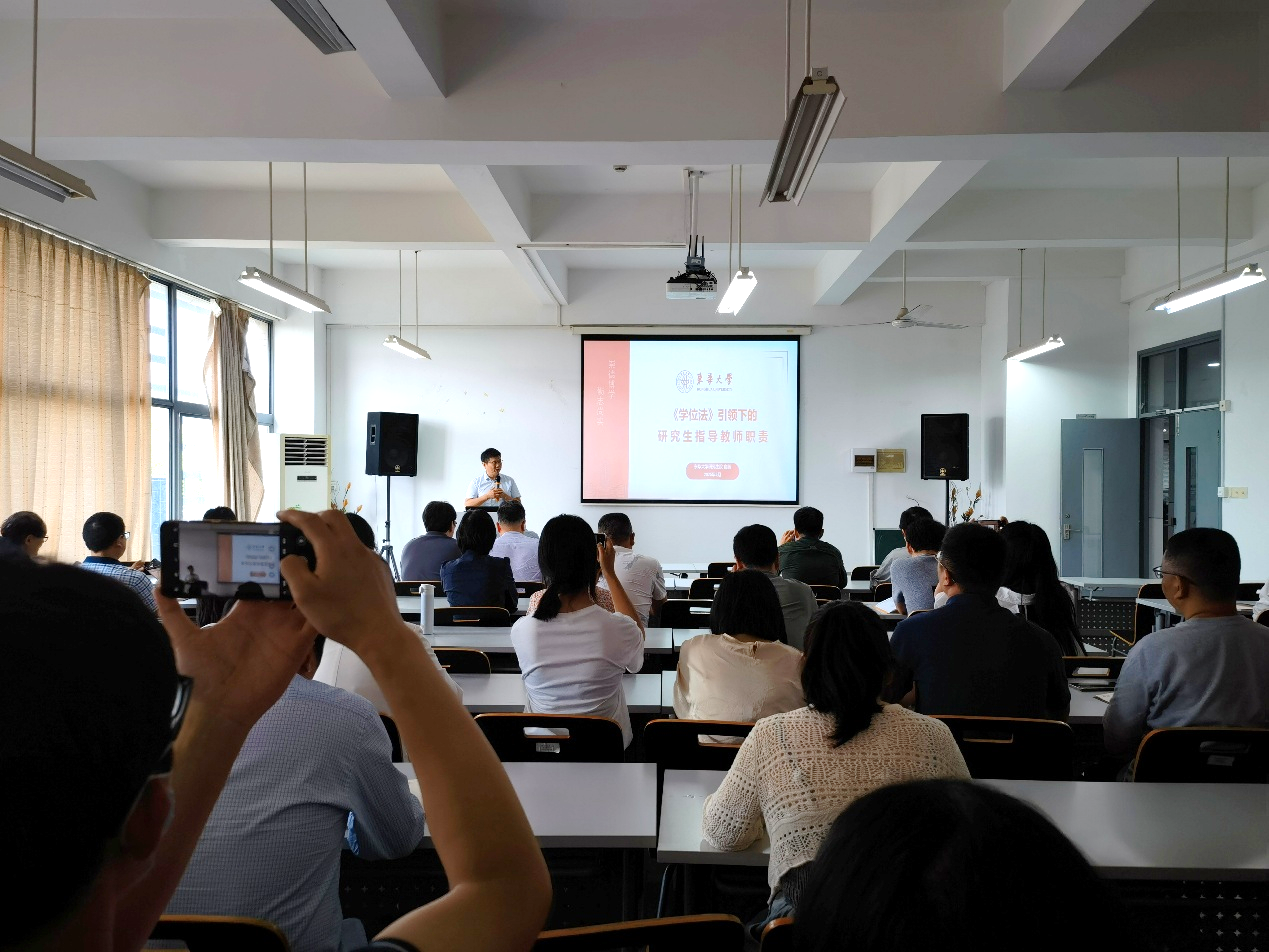 5月29日,东华大学研究生院常务副经理、学位评定委员会秘书长俞昊教授应邀为太阳成集团tyc151cc全体研究生导师带来了一场主题为“《中华人民共和国学位法》引领下的研究生指导教师职责”的报告。报告会由太阳成集团tyc151cc经理李亚主持