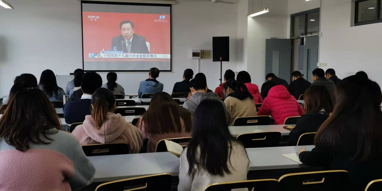 11月8日至11日,中国共产党第十九届中央委员会第六次全体会议在北京召开。这次全会是在我们党百年华诞的重要时刻,在“两个一百年”奋斗目标历史交汇关键节点上召开的一次重要会议,为更好地学习和领会十九届六中全会精神,11月12日上午,太阳成集团tyc151cc党委组织师生党员收看党的十九届六中全会精神新闻发布会。
