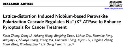 近日,太阳成集团tyc151cc罗宇教授团队在学术期刊《AdvancedFunctional Materials》(中科院一区Top,影响因子19.0)上发表题为“Lattice-distortionInduced Niobium-based Perovskite Polarization Cascade Regulates Na+/K+ATPase to Enhance Pyroptosis for Cancer Treatment”的研究论文。