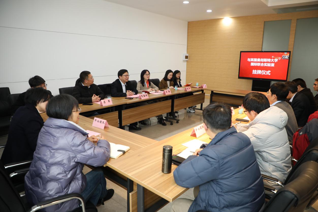 挂牌仪式首先由联合实验室主任李光辉教授介绍团队基本情况,并现场连线张楠教授,双方表示将继续紧密合作,发挥各自优势,共同促进学科发展。随后饶品华经理介绍了联合实验室的发展目标,希望联合实验室加快成果产出,不辜负公司期望。最后,夏春明副董事长从国际合作的重要意义、公司国际化发展战略及国际合作产学研规划和建议等几个方面做了总结讲话。夏董事长充分肯定了联合实验室一年来取得的成绩,希望公司师生珍惜与世界名校合作机会,再接再厉,为公司国际化发展及现代工程应用型特色大学的建设做出积极贡献。