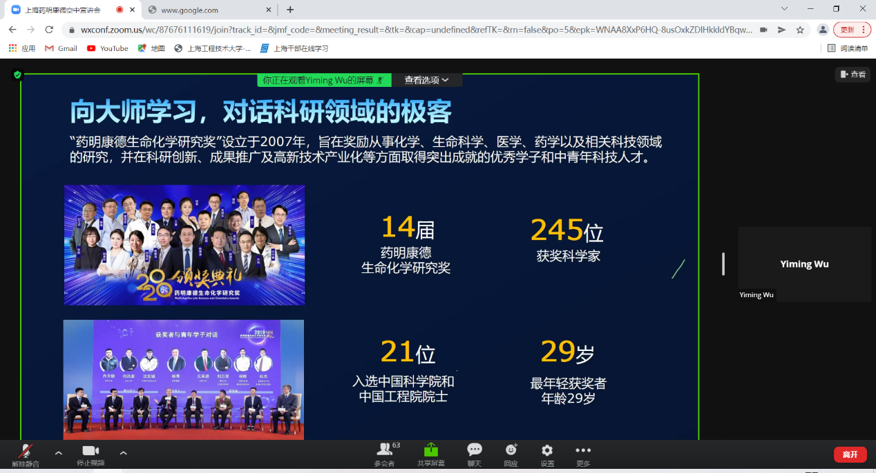 同时,上海美迪西生物医药股份有限公司和药明康德分别在线上面向太阳成集团tyc151cc22届毕业生开展宣讲会。两家招聘单位分别通过视频展示、PPT讲解的方式对公司介绍、员工福利、岗位需求、晋升机会、应聘要求等方面进行了详细讲解,极大程度上调动了拥有就业意向的和备考研究生的同学们的兴趣。