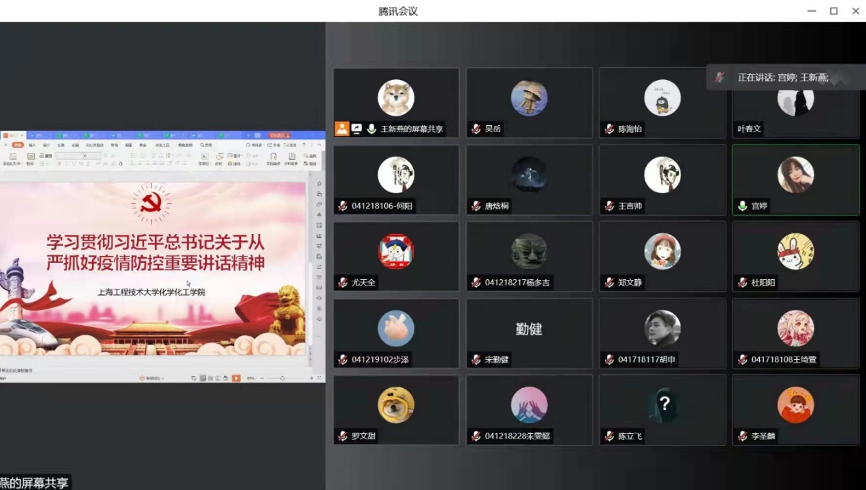 专题学习采用线上集体学习和线下自主学习相结合的方式开展。集体学习会上,高分子材料与工程专业党支部书记王新燕老师带领党员同志学习了习近平总书记重要讲话的五方面主要内容,使党员同志对习近平总书记的重要讲话精神有了总体上的把握。之后参会党员同志就学习内容进行了交流,环境工程专业员工党支部书记张晓普认为:“习近平总书记重要讲话为我们开展疫情防控各项工作提供了基本遵循,无论是要求提升分区分级差异化精准防控水平,还是要求不断优化疫情防控举措,亦或是要求推进加强免疫接种,无不体现了以习近平总书记为核心的党中央以人民为中心、坚持人民至上的执政理念,我们要在生活中、在细微处践行党的宗旨。”参与园区志愿服务的研究生党员李怡菲谈到自己学习的感想时说:“尽管新冠肺炎本土聚集性疫情频发,但相信在以习近平总书记为核心的党中央正确领导下,疫情的阴霾必定会散开,我们会继续发挥党员的先锋模范作用,在公司疫情防控的第一线发光发热”。线下自主学习的党员同志也分别书写了学习感悟。