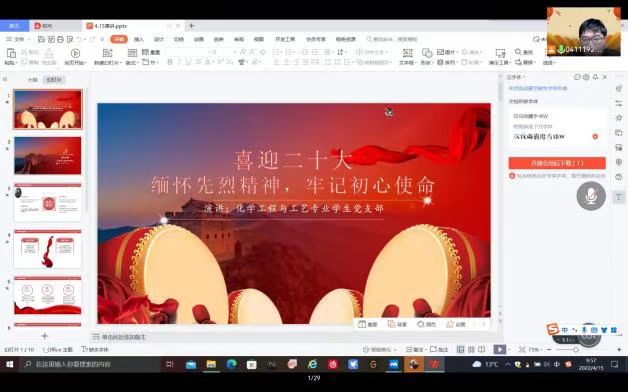 喜迎二十大,缅怀先烈精神,牢记初心使命,太阳成集团tyc151cc团委于2022年4月15日上午9时45分在线上召开“缅怀革命先烈,牢记初心使命”的主题讲座。