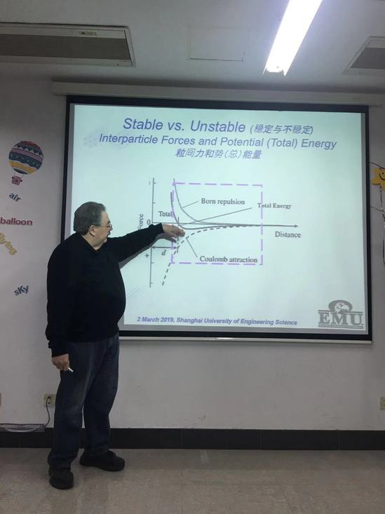 32日下午,世界著名涂料专家,美国东密歇根大学杰出教授John Texter应邀来校,在实训楼4号楼4405室给涂料工程专业全体师生作了《New Materials from Thermodynamically Stable Dispersions》的专题讲座,讲座由高分子材料与工程系温绍国教授主持。