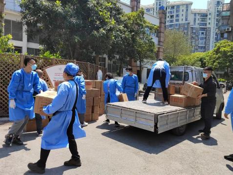 (3)抗疫物资的搬运员。小区居民人员较多,抗疫物资数量较大,物资搬运成为小区疫情防控工作的重要一环,每当爱心物资和抗疫物料运达小区的时候,他总会及时出现在卸载、搬运、分发的志愿者队伍中,只为爱心物资和抗原物料能够尽快分发到居民手中。