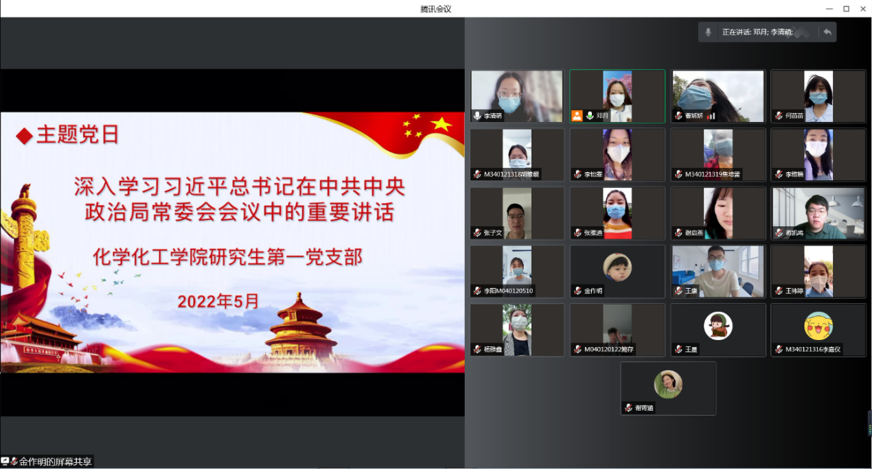 党委副书记、经理饶品华表示,我们要认真学习领会习近平总书记在5月5日中共中央政治局常务委员会会议上的重要讲话,切实把思想和行动统一到习近平总书记重要讲话精神和党中央决策部署上来,增强“四个意识”、坚定“四个自信”、坚决做到 “两个维护”。毫不动摇坚持“动态清零”总方针,坚定必胜信心,大家齐心协力一定能够打赢大上海保卫战。同时,我们要克服疫情对科研、教学等工作的影响,领导干部和党员同志要带头攻坚克难,在做好做实疫情防控工作的同时,统筹协调、稳步推进公司公司各项工作实现预期目标。