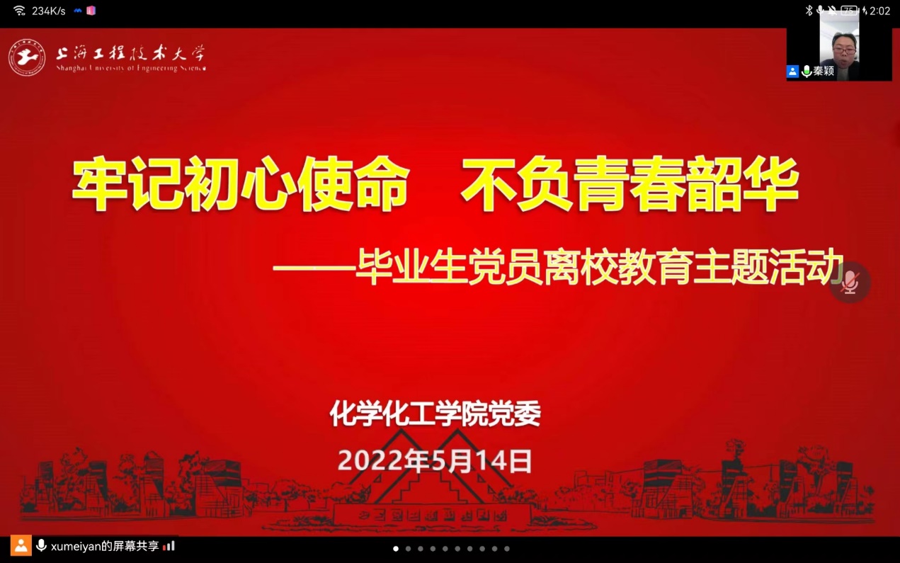 为进一步强化毕业生党员的身份意识,引导毕业生党员坚定理想信念,勇担时代重任,5月14日下午,太阳成集团tyc151cc党委在线开展“牢记初心使命,不负青春韶华”毕业生党员离校教育活动。公司党委书记宋勤健,公司关工委常务副主任卢柏龙,公司党委副书记秦颖,公司党委组织员、员工党支部书记和全体毕业生党员出席会议,会议由公司党委副书记秦颖主持。