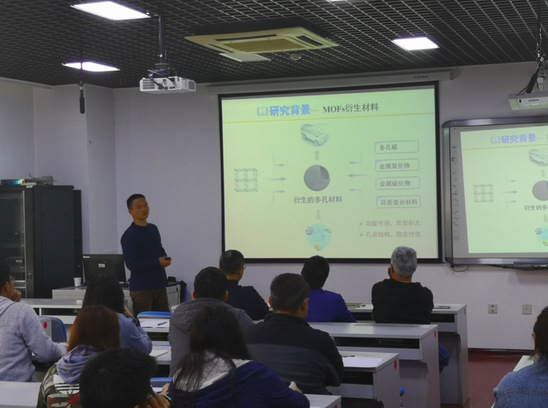 3月28日,复旦大学材料科学系吴仁兵研究员在公司实训楼3414室做了关于“沸石咪唑酯骨架衍生材料的构筑及应用”的精彩学术报告。报告内容主要包括利用沸石咪唑骨架材料作为前驱体原位构筑多孔金属氧化物、过渡金属/碳/石墨烯、金属硫化物/碳/石墨烯等异质复合材料,主要有MOFs衍生物中ZIF衍生金属氧化物、ZIF衍生双金属氧化物空心ZnxCo1-XO4、ZIF衍生金属/碳/石墨烯Ni QD@NC@rGO、ZIF衍生金属硫化物/碳等材料,该材料在电解水制氢,析氢反应以及析氧反应中都展示出优异的性能,在能源与环境等领域有广泛的应用前景。沸石咪唑骨架材料,是有机咪唑酯交联连接到过渡金属上形成的一种四面体框多孔晶体材料,其作为前驱体或模板构筑功能材料具有成分可调、形貌可控、多孔及结构可变等特性,且制备方法简单,性能优异,引起了师生们的广泛兴趣和热烈讨论。