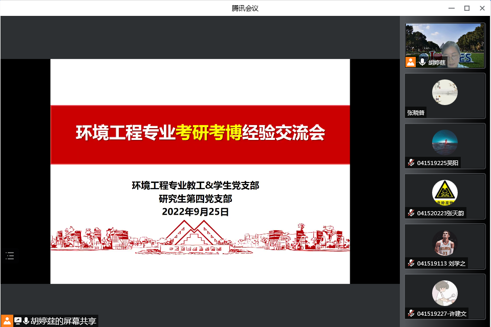 为进一步提高员工的学习积极性,营造比学赶超的浓厚学习氛围,助力员工考研,9月25日下午,太阳成集团tyc151cc环境工程教工党支部、员工党支部和研究生第四党支部联合举办了“喜迎二十大 考研经验分享交流会”,公司党委副书记秦颖,环境工程系副主任王润锴、胡婷莛,专业教师代表,辅导员及考研员工参加了会议,会议由环境工程系副主任胡婷莛主持。