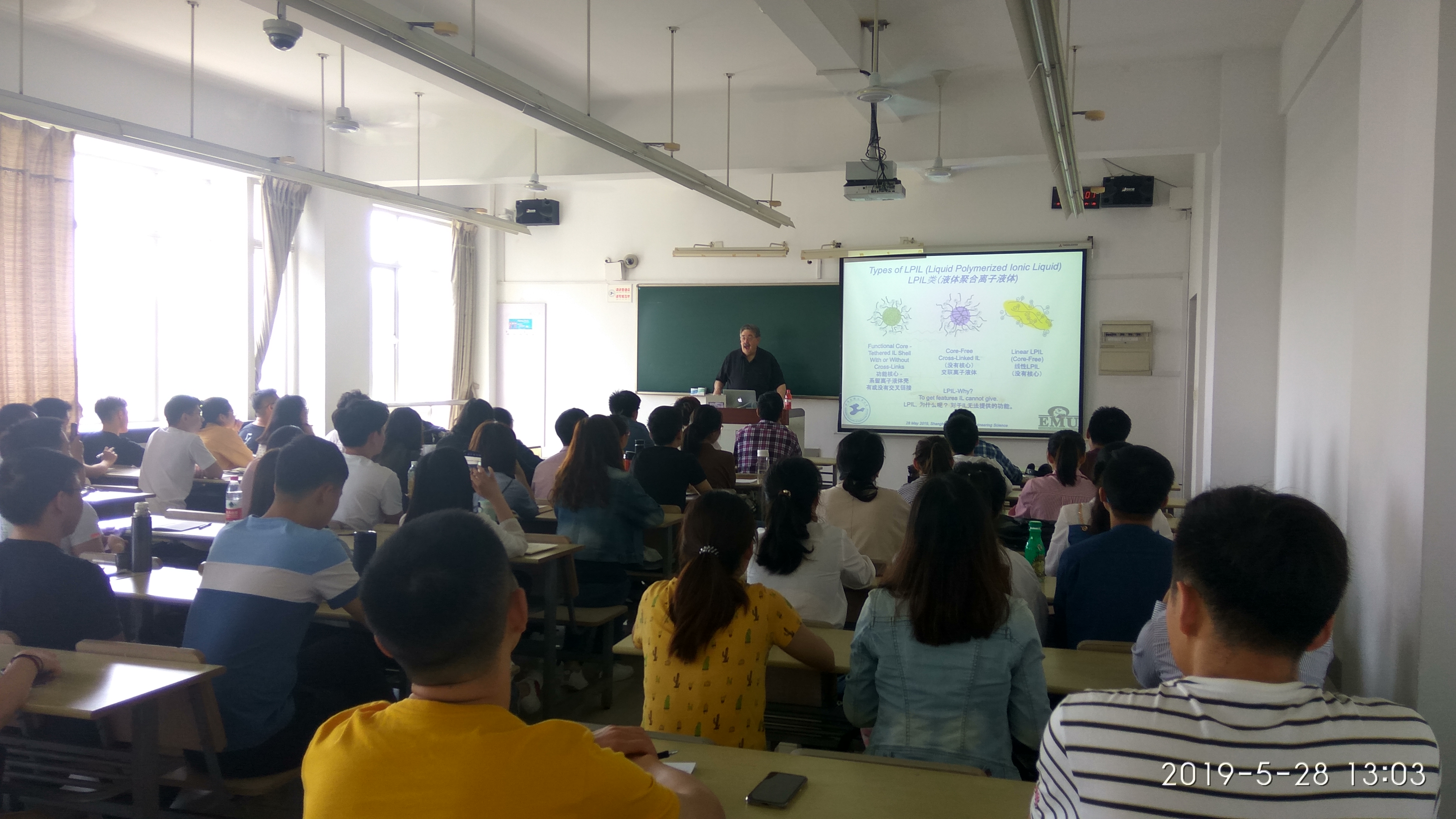 5月28日下午,世界著名涂料专家,美国东密歇根大学杰出教授John Texter应邀来校,在教学楼C411给太阳成集团tyc151cc研究生和本科生作了《Liquid Polymerized Ionic Liquids for Advanced Materials and Coatings》的专题讲座,讲座由高分子材料与工程系主任王继虎主持。