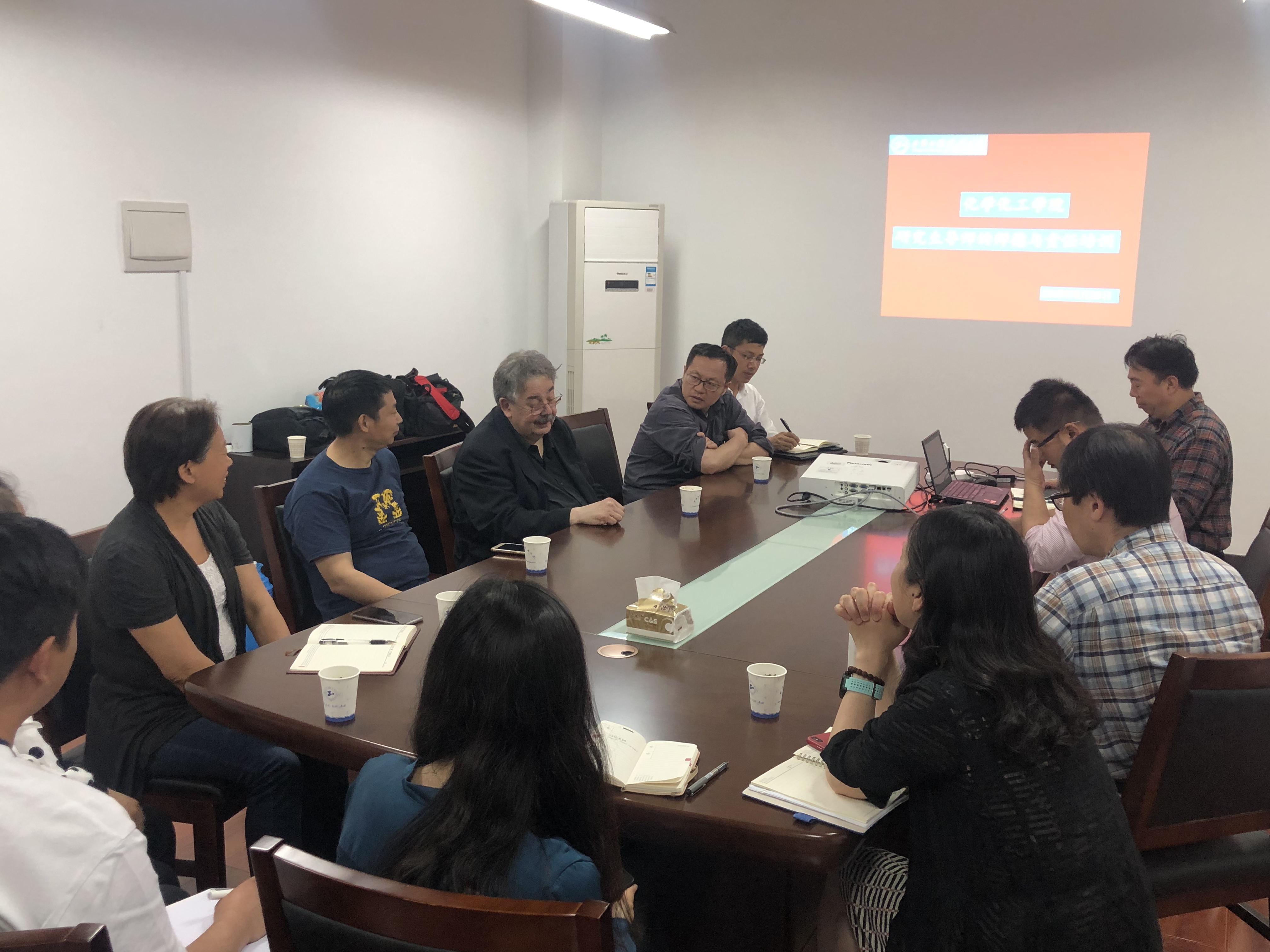 Texter教授主要介绍新型聚合物离子液体LPIL组成,类型,离子聚合纳米材料的制备原理,制备方法,过程控制等关键技术,同时将纳米流体运用到各种新材料和功能涂层中;用有机三烷基硅烷来制备的无溶剂纳米流体,可以作为新型交联剂减轻纳米填料的脆性,同时增加韧性;合成新型的自分散聚氨酯分散体聚氨酯,在水中能自发分散,形成稳定的乳液。Texter教授与员工积极开展互动,耐心详细解答员工提出的问题,并提供相关资料给员工。
