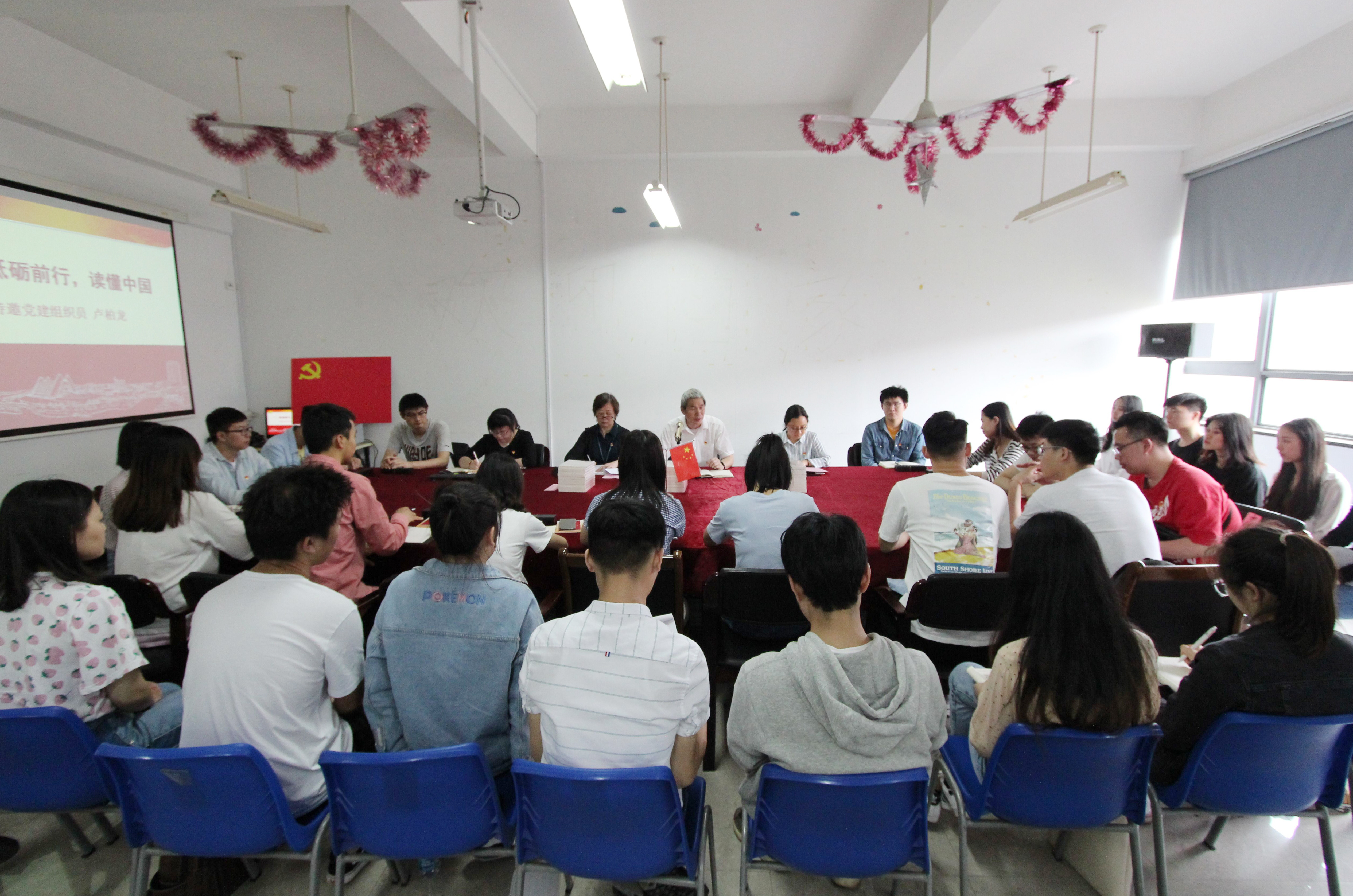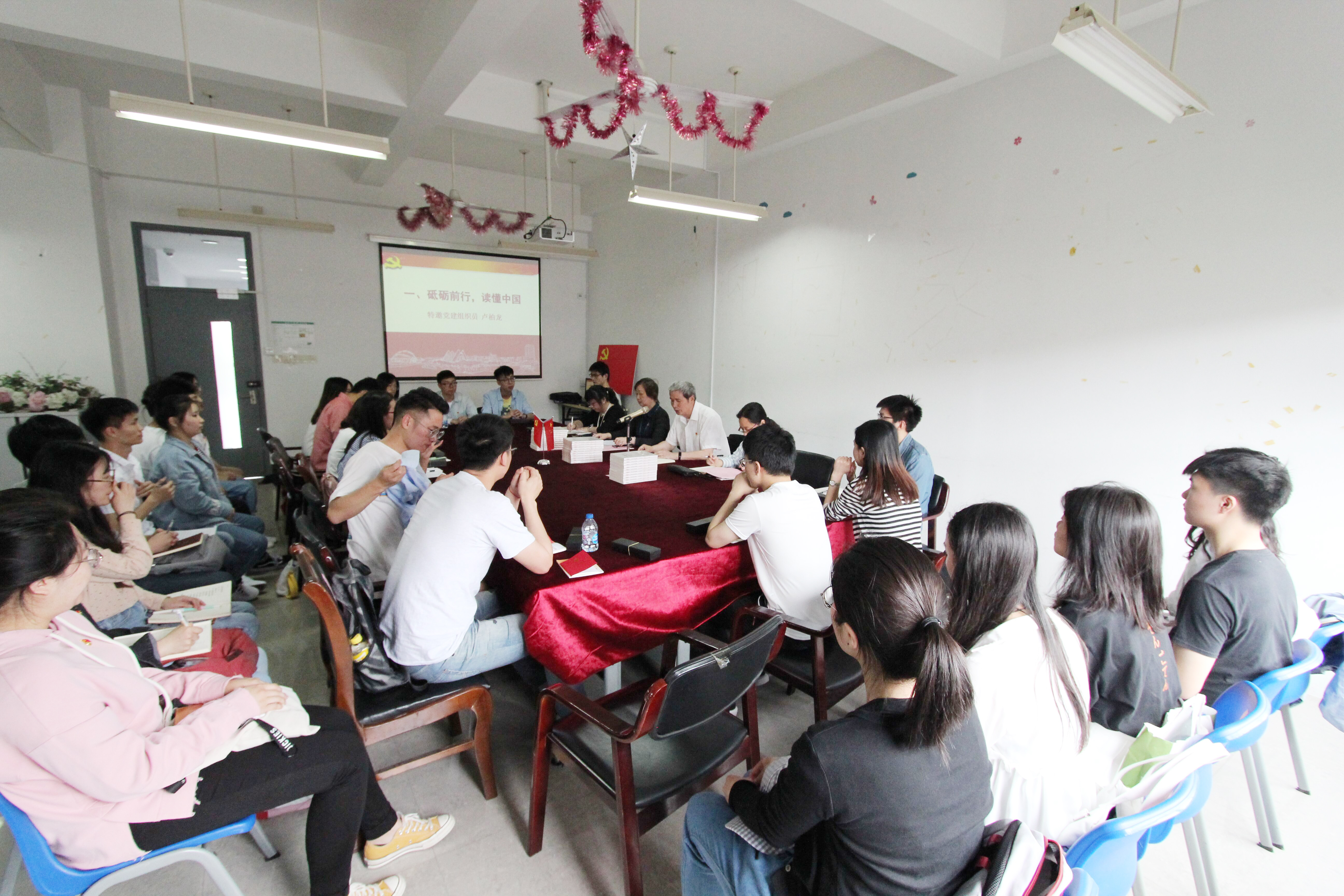 特邀党建组织员卢柏龙老师首先作《砥砺前行,读懂中国》的主题发言。他带领毕业生党员回顾了公司和公司发展的历程,经历了几代人的奋斗与拼搏才铸就今天的美好。他希望青年党员们以“认真负责的态度”、“求真务实的精神”、“开拓创新的勇气”、“奋发有为的精神”、“顽强拼搏的钻劲”积极融入国家的发展中。同时,他寄语广大青年党员,一定要牢记自己的第一身份,时刻守住自己的政治底线,无论是思想上还是行动上都要发挥党员的作用。他提出三点要求:第一,坚定理想信念,不忘初心;第二,坚持学习,努力成为工作典范;第三,注意身体健康,劳逸结合。希望毕业生党员在未来的道路上树立起新时代合格党员的典范和标杆。
