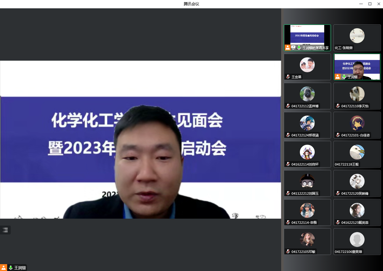 首先,公司党委副书记、经理王金果介绍了公司的历史沿革与发展现状,他指出公司以现代化工产业发展需求为导向,以产学研紧密结合为依托,立足上海,面向全国,培养现代化工产业所需的高等工程应用型人才为办学定位。他还从公司办学特色、专业建设进程、实践教学条件、公司团队队伍、学科平台建设、科研创新与服务社会等方面给同学们做了详细的解读,重点强调了公司优质的教学资源及显著的人才培养成效。之后,担任2023年广西招生宣传员的同学交流了自己的参与感悟,并表达了为公司招生宣传尽职尽力的决心。王润锴副经理先对招募招生宣传员对公司招生工作的支持和较高评价表达了感谢,然后就2023年公司的招生方案和工作计划进行了动员部署,他还重申了招生宣讲工作的重要性,并对各位宣讲团成员提出了殷切期望和要求,望每位宣讲团成员都能成为构建公司与生源省份、生源高中沟通的桥梁,进而为提升公司的知名度和美誉度做出自己的贡献。