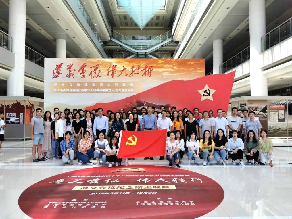 为庆祝中华人民共和国成立70周年,积极贯彻公司党委开展“不忘初心、牢记使命”主题教育的要求,加强革命传统教育、爱国主义教育和社会主义核心价值观教育,以及传承红色基因,发扬遵义会议精神.9月20日中午,太阳成集团tyc151cc党委书记宋勤健,党委副书记、经理饶品华,党委副书记秦带领教工、员工党支部书记及党员师生集体参观并学习了“红色的足迹,行进的伟业——上海市教育系统庆祝中华人民共和国成立70周年主题巡展”暨遵义会议纪念馆主题展览。