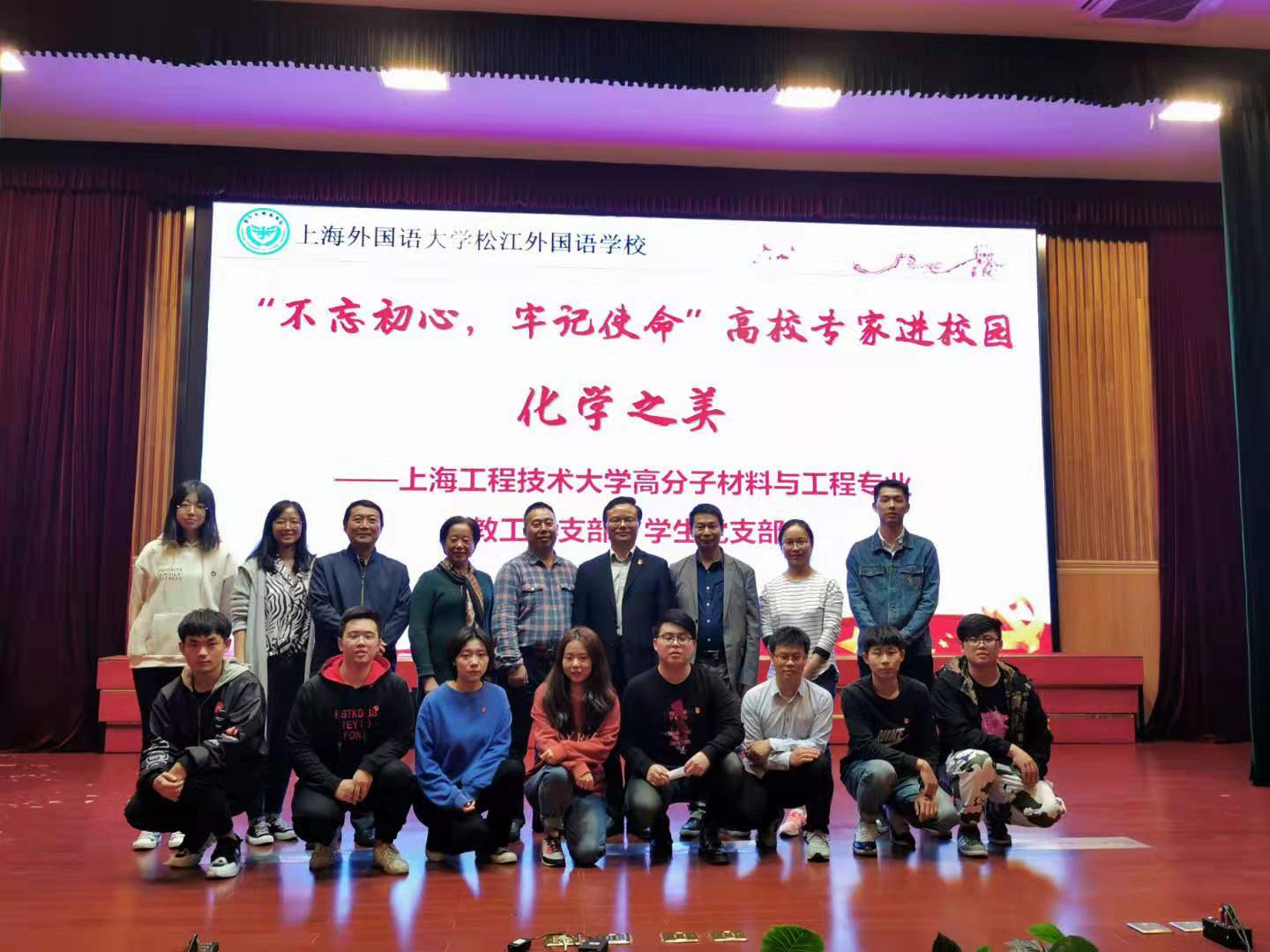 【不忘初心、牢记使命】太阳成集团tyc151cc高分子材料与工程专业教工党支部和员工党支部同赴上海外国语大学松江外国语公司开展“化学之美”主题讲座志愿服务