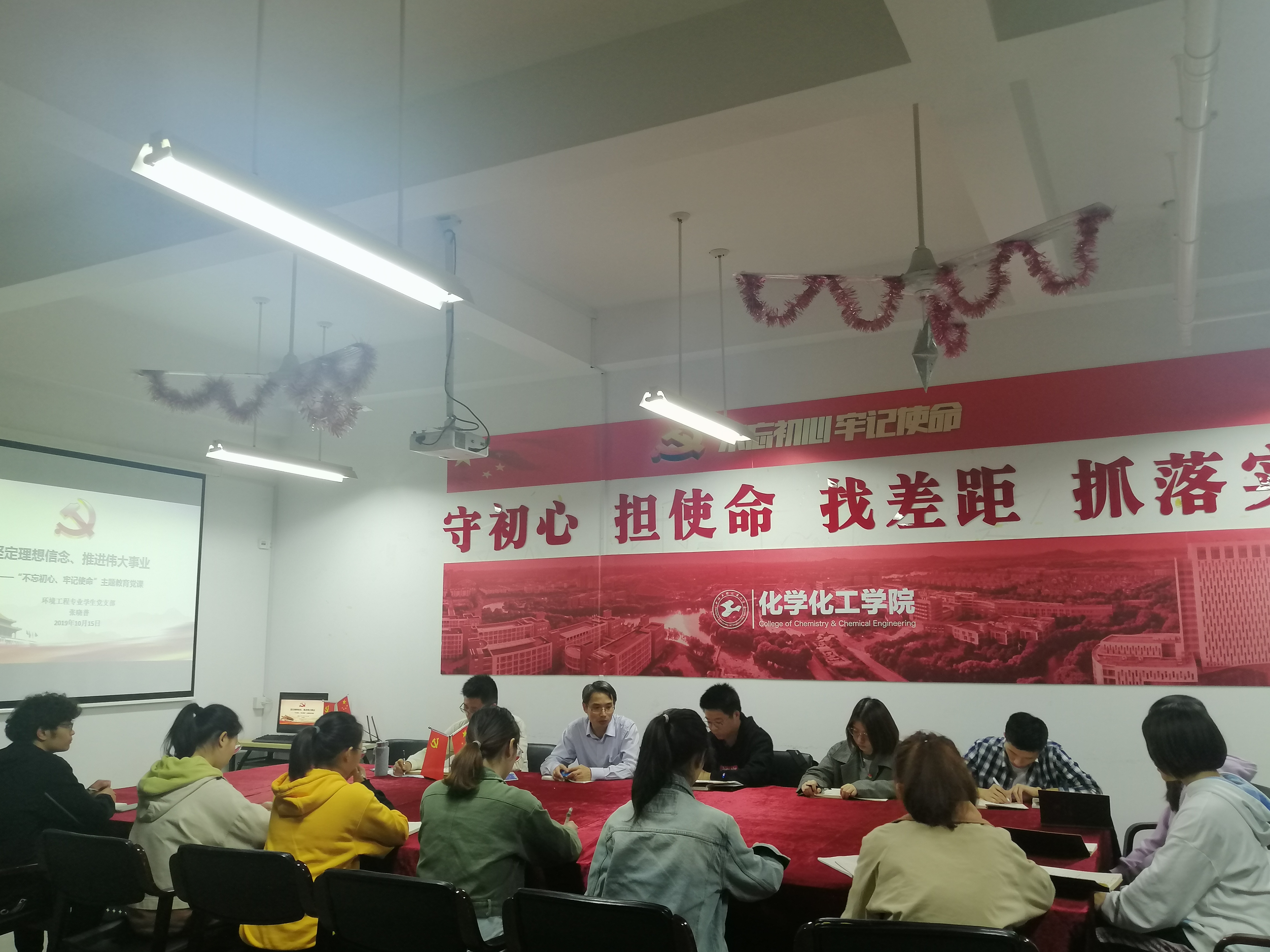 为深入学习贯彻习近平新时代中国特色社会主义思想和党的十九大精神,全面落实党中央关于“不忘初心、牢记使命”主题教育的目标与要求,在公司党委和公司党委的安排部署下,10月18日下午,环境工程员工党支部支部书记张晓普以“坚定理想信念、推动伟大事业”为主题,为党支部全体党员上了一堂“不忘初心、牢记使命”的专题党课,公司党委副书记、经理饶品华参加了专题党课教育。