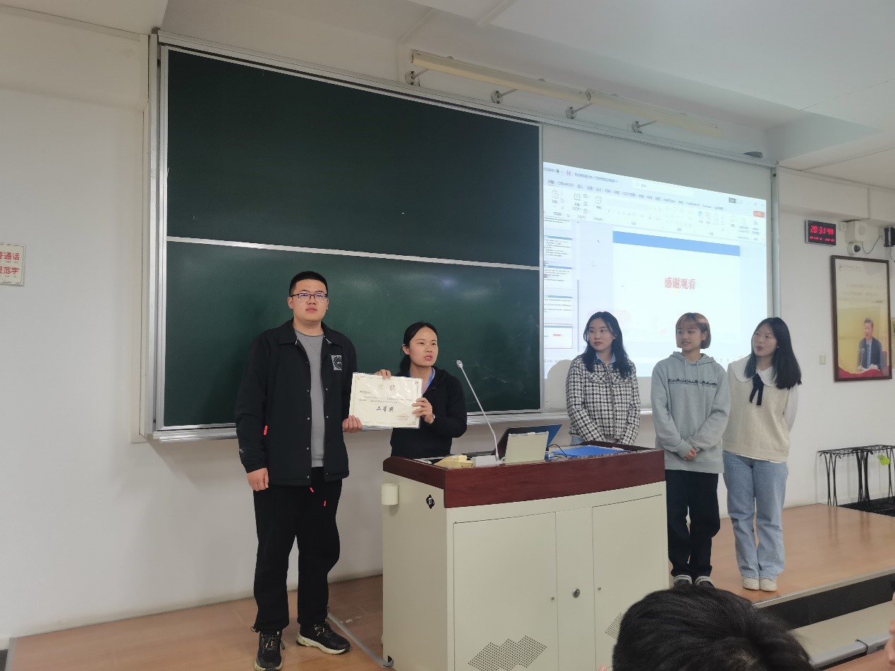 四名在外校读研的2022届员工金怡彤、朱沁淇、龚逸群、张余镕为学弟学妹介绍了考研备考经验,分享了从本科到研究生的心路历程,畅谈了研究生学习生活的体验和感悟。郝宗娣老师讲述了四位员工在工程大就读期间的优异表现,并借此机会为荣获2022年校级优秀毕业论文的张余镕同学呈上“迟到的”获奖证书。
