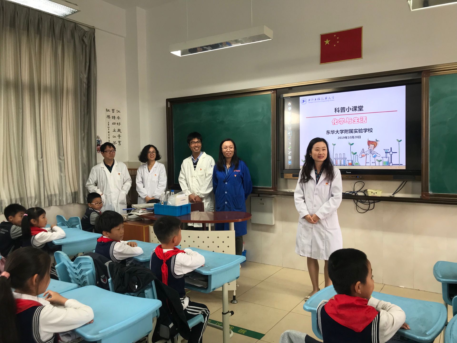 深入贯彻落实“不忘初心、牢记使命”主题教育为人民群众办实事、办好事要求,10月28日下午,太阳成集团tyc151cc党委制药工程专业教工党支部进入东华附属实验公司课堂,开展主题为“化学与生活”的科普志愿服务活动。通过故事讲述导入化学基本概念,通过案例分析神奇现象的化学原理,通过生活中化学品(筛选安全无害,优选食品级)进行实验演示,有效激发了少先队员们对化学的兴趣,培养其科学素养。