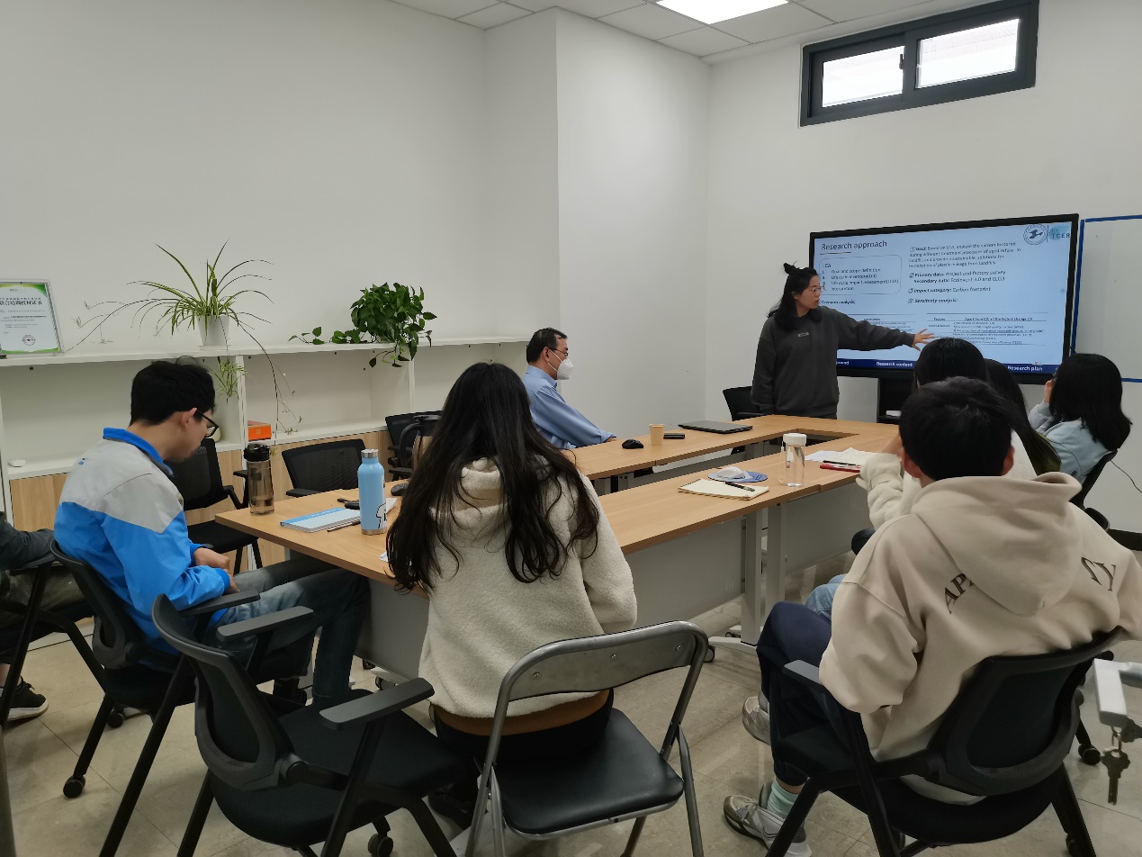 4月25日,Foo教授在实训楼5323会议室与部分从事碳足迹评估与过程集成优化研究的师生进行学术研讨。上午,多位硕士生汇报了在研课题,Foo教授逐一点评,现场交流气氛热烈。下午,研讨会继续,Foo教授介绍了他当前的主要研究,并作题为“图解法指导下的工业生产过程碳减排”的学术报告。