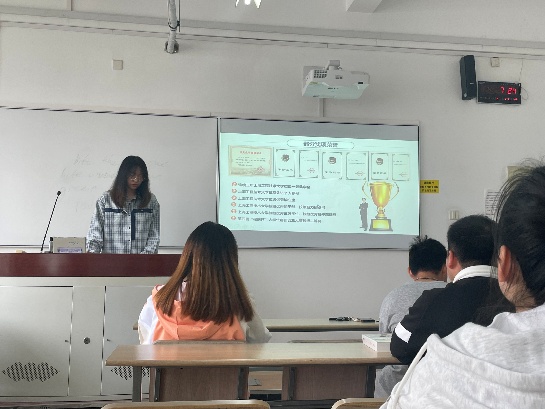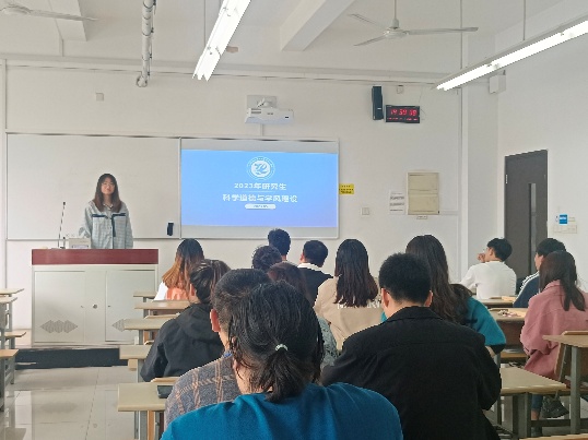其次,徐晨雪同学分享了自己的研究生生活。回顾了她在化学工程与技术领域的探索与成长,分享了科研过程中遇到的困难和挑战,提倡要用平和的心态去应对失败,科研的过程就是不断碰壁然后突破的过程。通过亲身经历,她勉励研究生同学:一要珍惜天赋和机遇,二要相信运气和努力相辅相成,三要主动学习和交流。