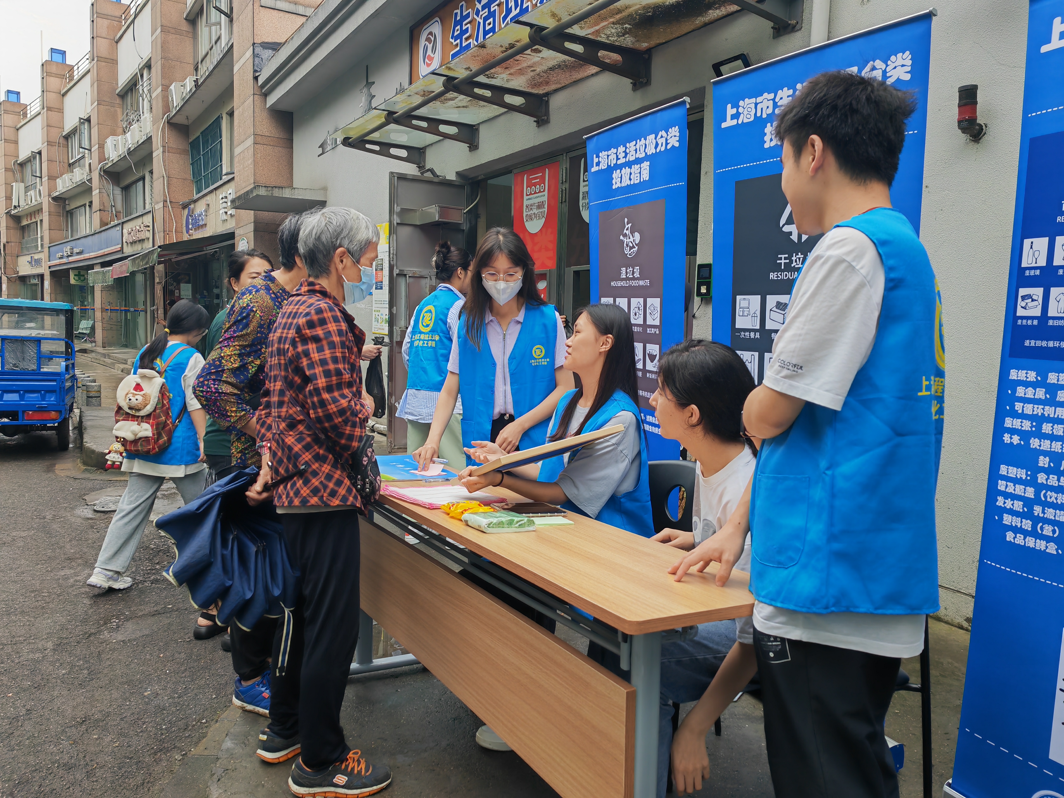 为了增强社区居民对垃圾分类知识的了解,进一步提升社区居民环保参与意识,党支部党员同志一方面在社区垃圾投放站点布展了印有垃圾分类基础知识的易拉宝,方便社区居民投放垃圾时对比参考,分类投放;另一方面还现场设置了垃圾识别分类挑战小游戏,回答诸如“碎瓷片、螃蟹壳、沾了水的纸巾、过期化妆品分别属于什么垃圾?”等问题,以挑战积分方式赢取环保小礼品,吸引了社区居民的积极参与。