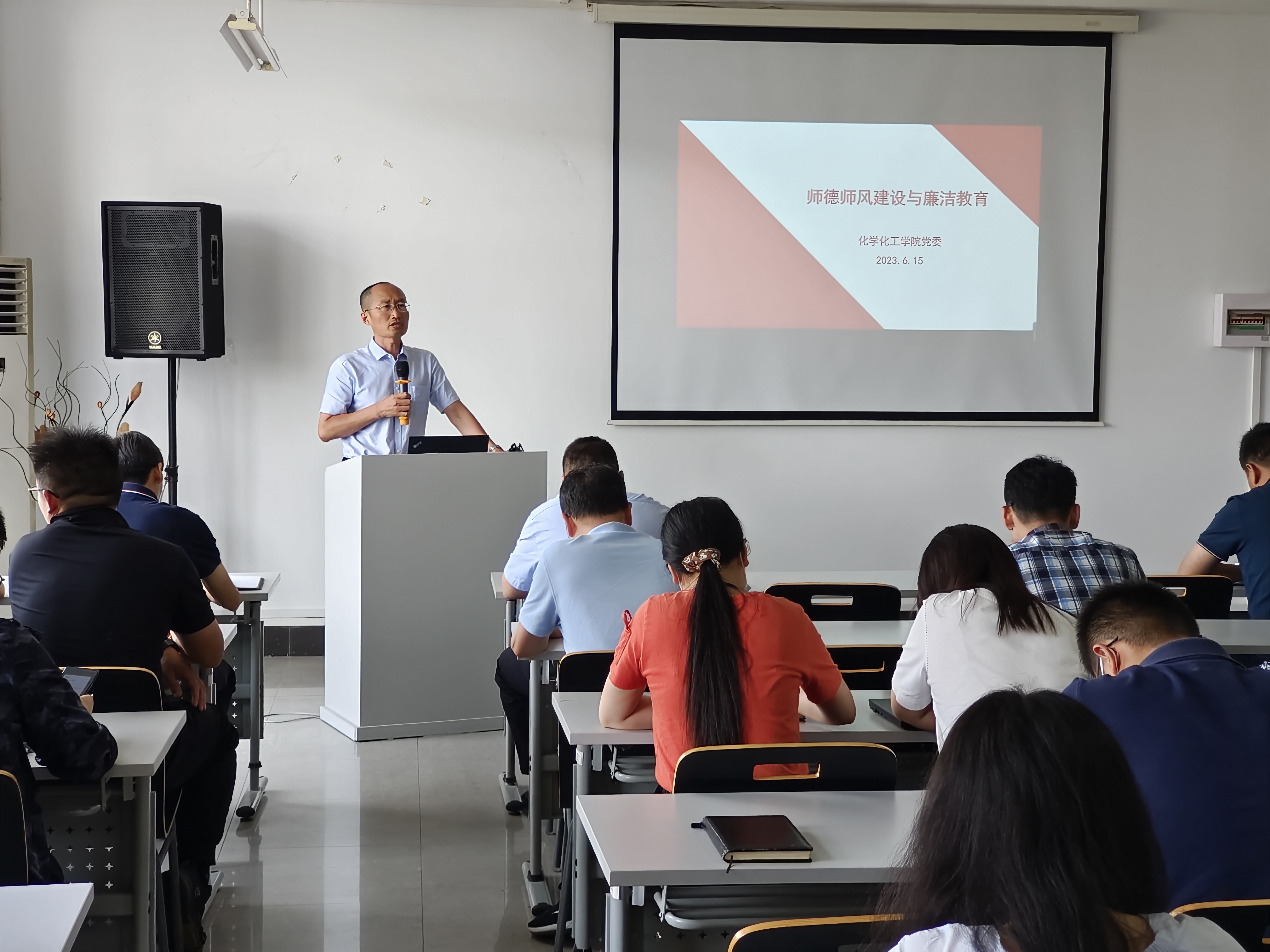 宋勤健书记指出,要全面加强教师思想政治工作,着力提升教师职业道德素养,加强教师思政工作队伍建设。突出规则立德,强化教师的法治和纪律教育。以学习各级法律法规、行为规范及公司教师行为规范等为重点,提高全院教师的法治素养、规则意识,提升依法执教、规范执教能力。加强警示教育,强化教风、作风建设和纪律约束,进一步明确师德底线红线,引导广大教师时刻自重、自省、自警、自励。