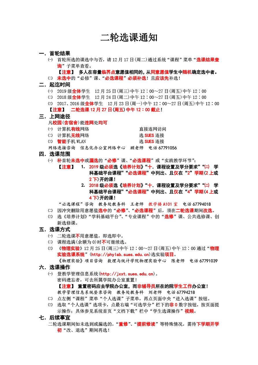 2019~2020学年第二学期 二轮选课通知 各轮选课友情提示