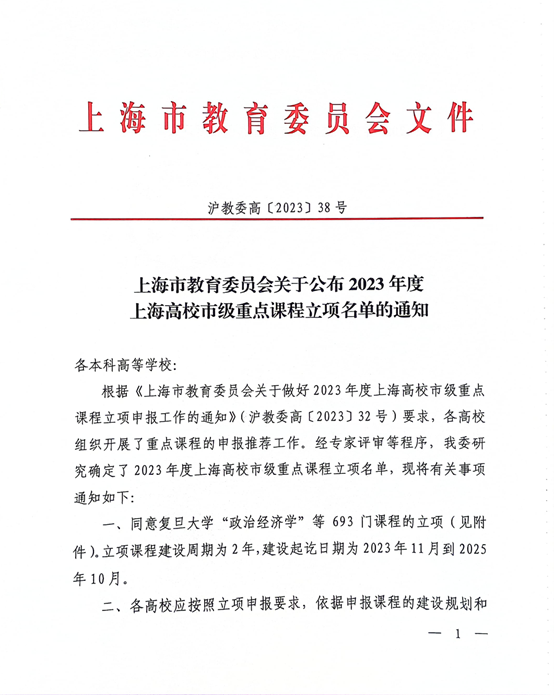 2023年度上海高校市级重点课程