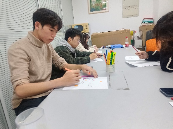 秦颖老师首先了解了同学们的考研意向公司,并给予同学们支持和鼓励。其次让同学们放松心态,轻装上阵,努力备考,当感到心理压力过大时,及时向心理咨询中心和公司的心理辅导员老师等求助,尽早疏解情绪。张老师向大家介绍了本次团体辅导的目标和形式,一是遵守团体辅导的安全保密原则,尊重小组成员的隐私,做出保密承诺;二是通过绘画的形式将现阶段的自己和考研后的自己进行展示;三是通过解析画作分析自我的深层想法,看到自我的内心压力,疏解情绪,提高自我认知,实现自我疗愈。